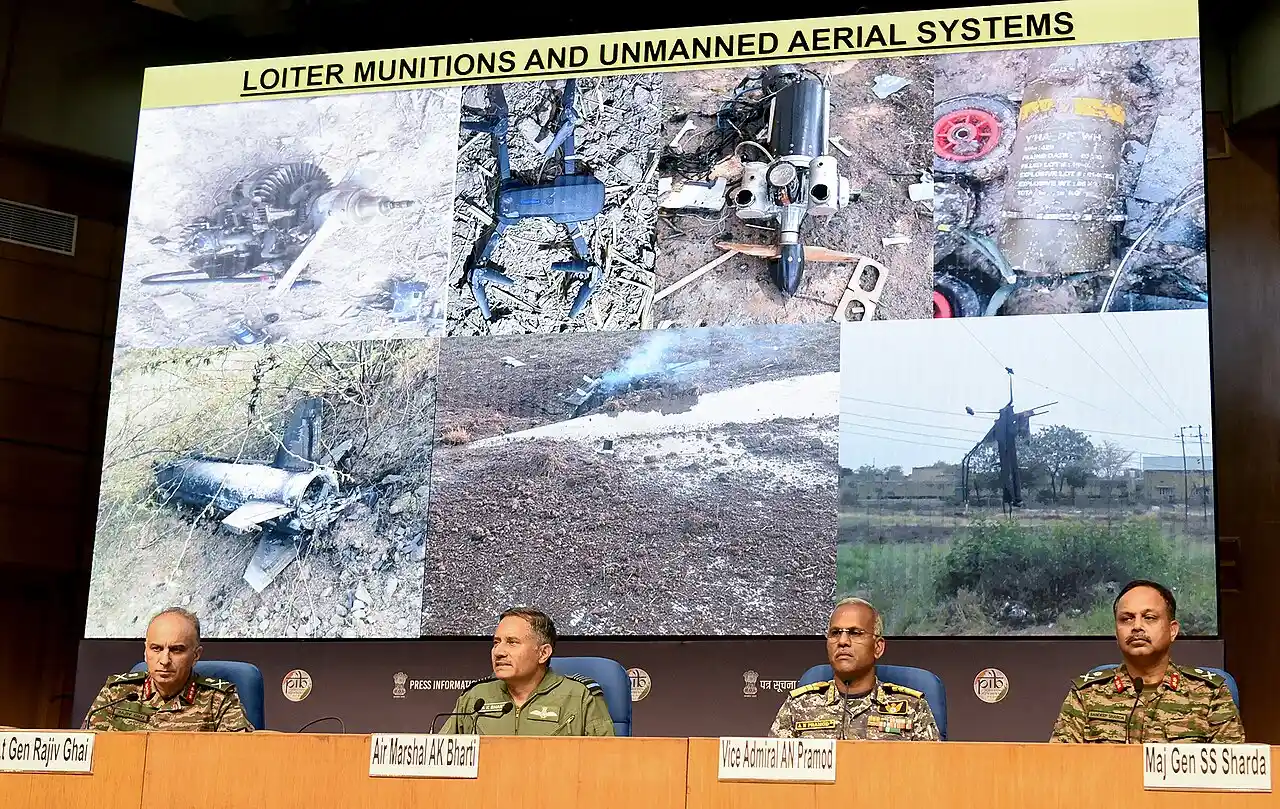 Image Credit: Press Information Bureau. Director General Air Operations (DGAO) Sh. A.K. Bharti briefing the media on ‘Operation Sindoor’ at National Media Centre. Lieutenant General Shri Rajiv Ghai, Vice Admiral Shri AN Pramod and Major General S.S. Sharda are also seen in the Picture.