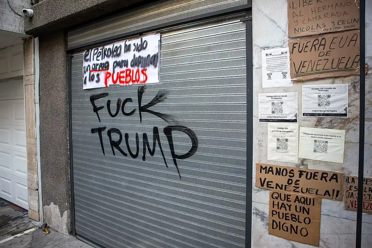 Image Credit: ProtoplasmaKid. Protests against US intervention in Venezuela on January 3, 2026, at the Venezuelan Embassy in Mexico.